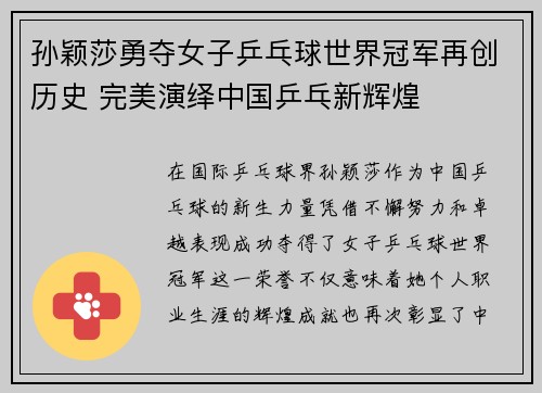 在国际乒乓球界,孙颖莎作为中国乒乓球的新...