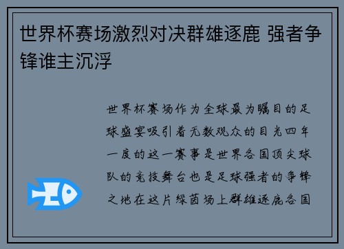 世界杯赛场,作为全球最为瞩目的足球盛宴,...