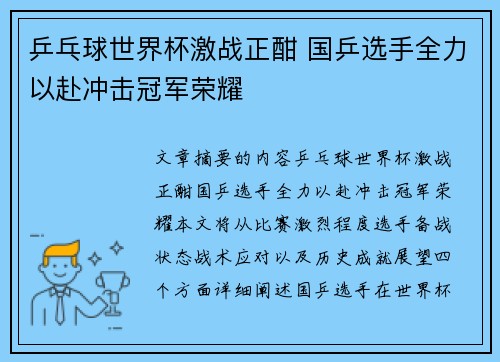 文章摘要的内容:乒乓球世界杯激战正酣,国...