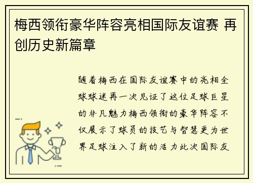 随着梅西在国际友谊赛中的亮相,全球球迷再...