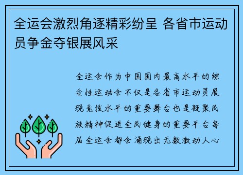 全运会,作为中国国内最高水平的综合性运动...