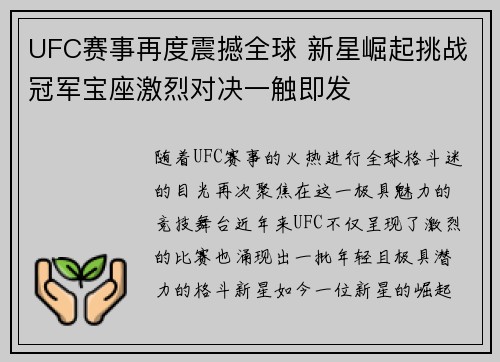 随着UFC赛事的火热进行,全球格斗迷的目...