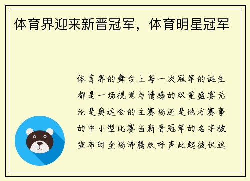 体育界的舞台上,每一次冠军的诞生都是一场...