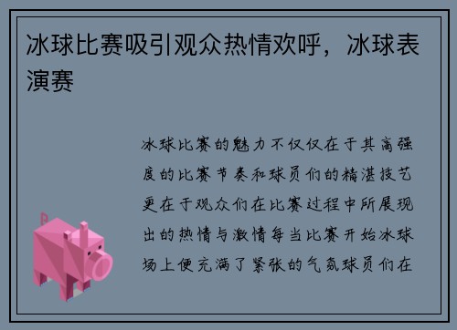 冰球比赛的魅力不仅仅在于其高强度的比赛节...