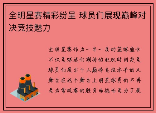 文章摘要:2025年全明星赛作为篮球盛事...