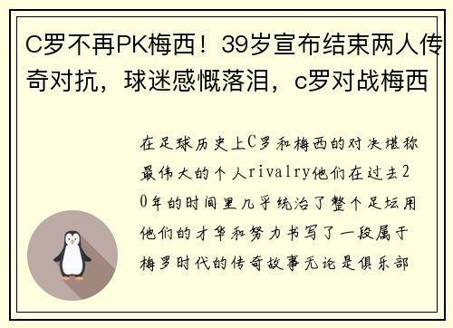 在足球历史上,C罗和梅西的对决堪称最伟大...