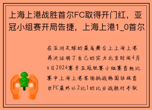 在亚洲足球的最高舞台上,上海上港再次证明...