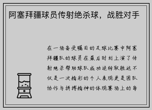 在一场备受瞩目的足球比赛中,阿塞拜疆队的...