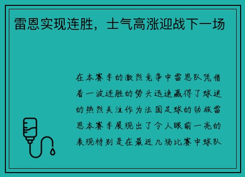 在本赛季的激烈竞争中,雷恩队凭借着一波连...