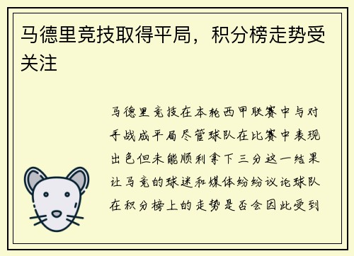 马德里竞技在本轮西甲联赛中与对手战成平局...