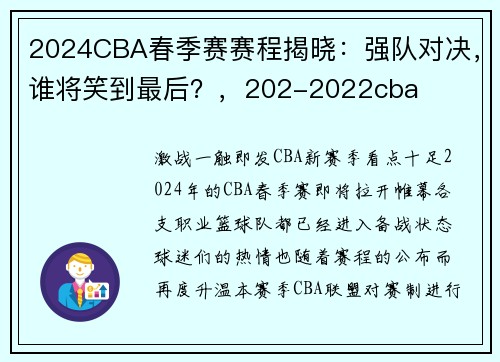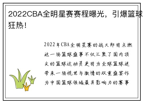 2022年CBA全明星赛的战火即将点燃,...