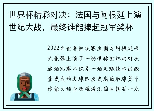 2022年世界杯决赛,法国与阿根廷两大豪...